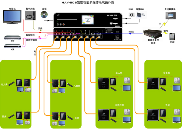 第一套家庭背景音樂系統(tǒng)是一層和二層7個(gè)房間和露臺,主要是居家生活。